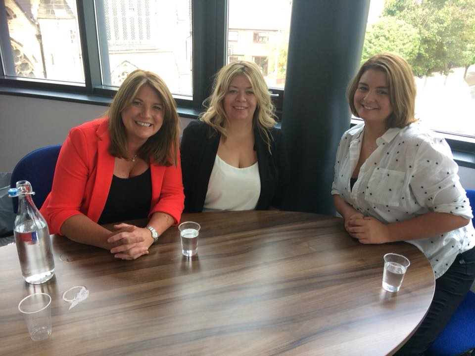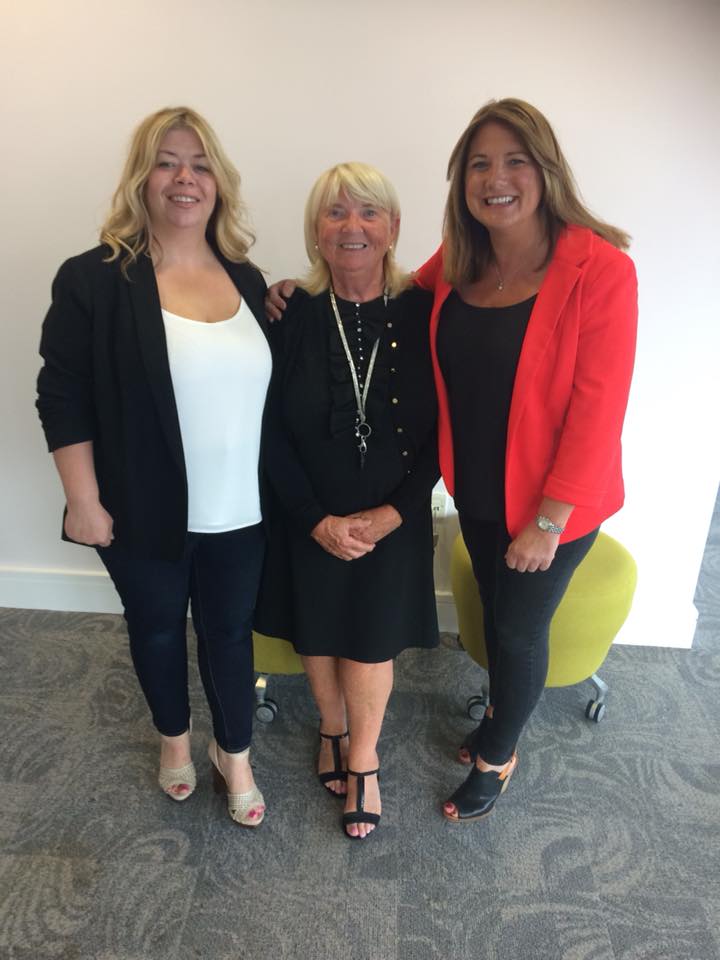 | Joanne & Sara with event host Bernie Cox (in the centre) |